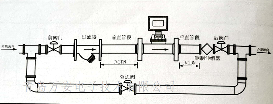 3、为了便于维修,不影响流体正常输送,建议依照上图所示设置旁通管道。